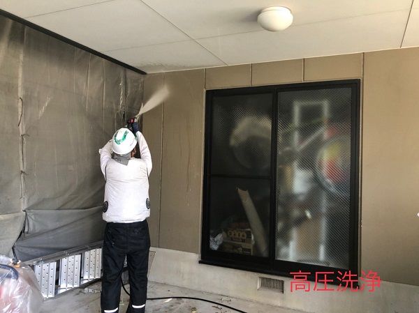 塗装は下地からと言われるように高圧洗浄を丁寧に行ってから塗装工事に入ります。