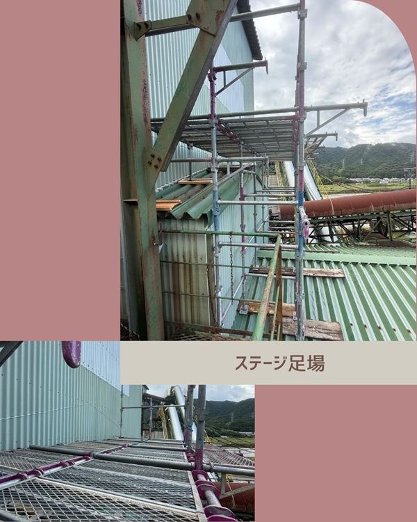 工場の屋根上にステージ足場を設置しました👷♂️
