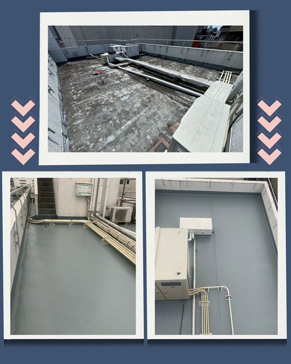 屋上やバルコニーなどに防水材を施工し、水の侵入を防ぐことで構造部分の劣化を防止します✨️